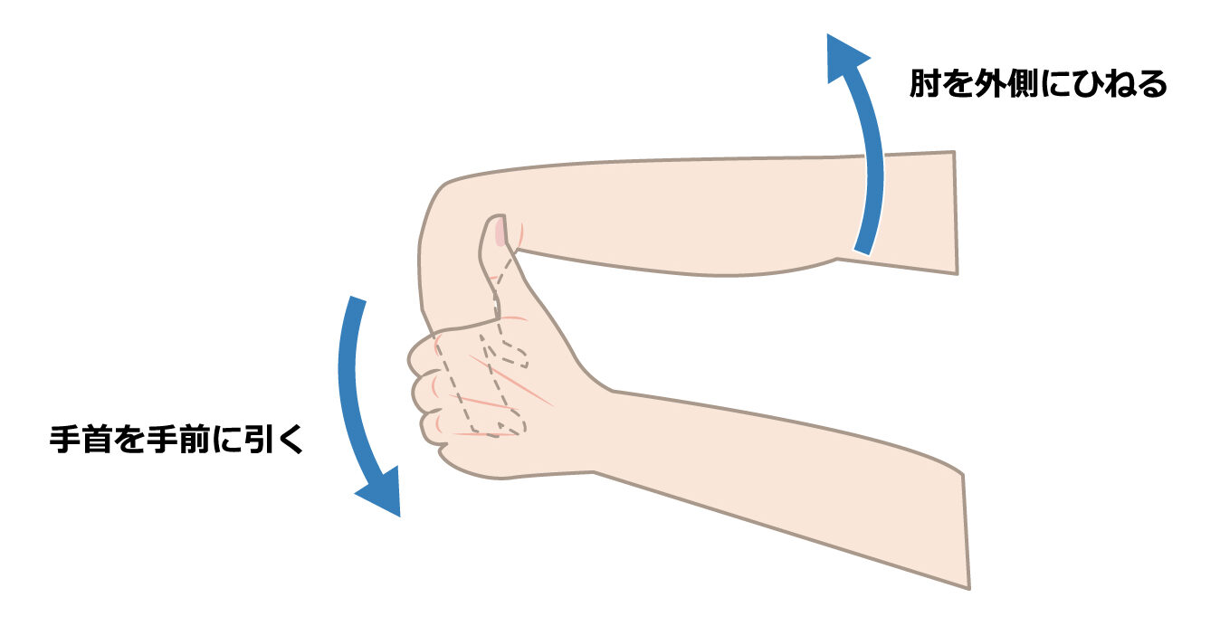 手を前に出した状態のままで、もう一方の手で前に出した手の指先を掌側に引くストレッチがおすすめです。